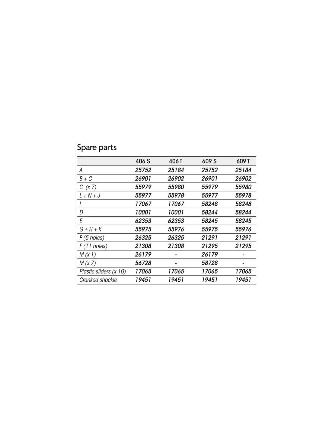 Voor type: 406T, 609T en 811T